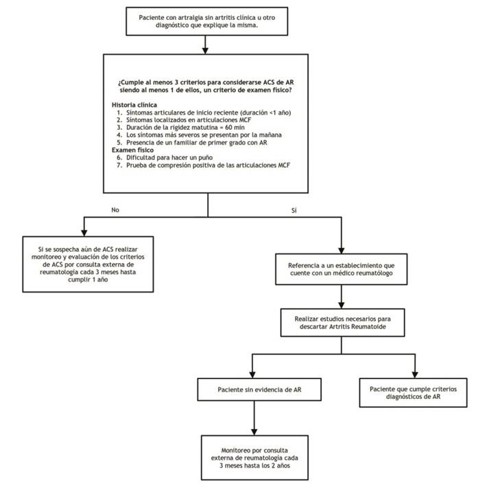 Los pacientes que cumplan la definición de ACS deben ser referidos a un hospital que cuente con un médico especialista en Reumatología. BPC
