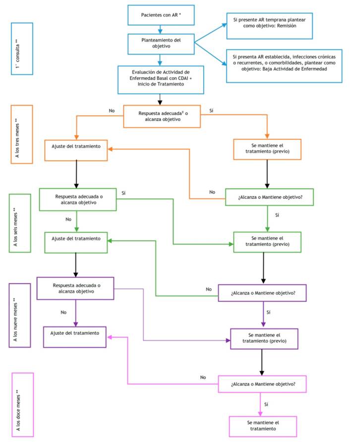 Rheumatoid Arthritis (RA) has adverse health consequences, its early diagnosis and optimal management require recommendations based on high quality evidence adapted to each health system.